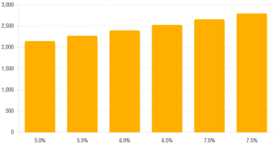 - The difference between 5.0% and 5.5% is meaningful—but the jump from 6.5% to 7.0% bites harder in dollars.